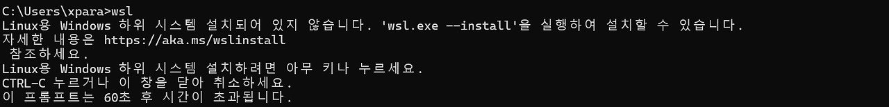 3. 명령 프롬프트에서 wsl 설치를 확인합니다.