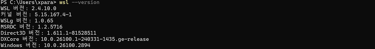 wsl --version | 현재 WSL 및 커널 버전 확인 |