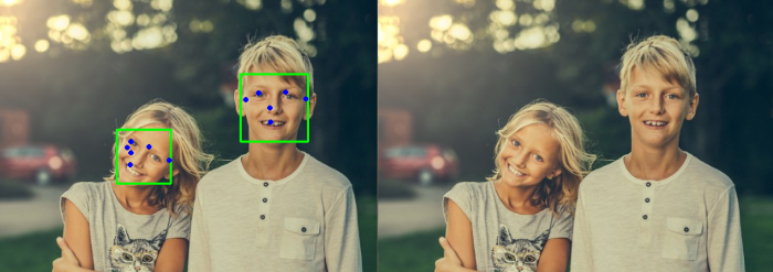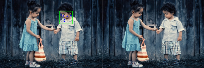 이 중 한 아이만 얼굴이 감지되었고, 다른 아이는 측면이 심하게 돌아가 있어 감지되지 않았습니다.