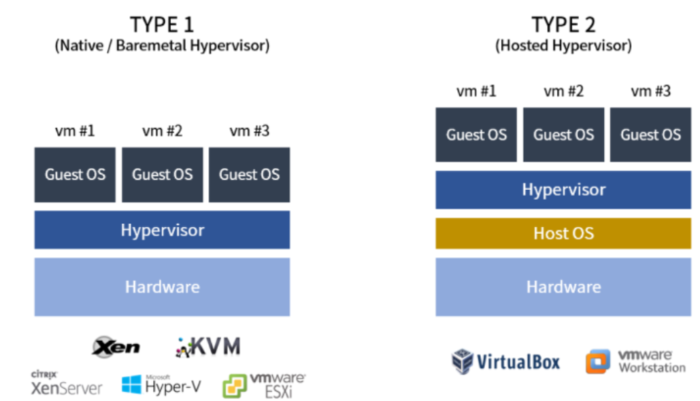 하이퍼바이저는 구조에 따라 두 가지 방식으로 구분됩니다.