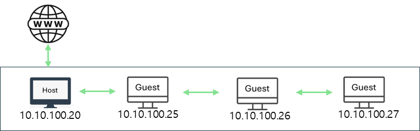 - 주 용도: VM 간 통신 + 외부 인터넷 사용이 필요한 테스트 환경.