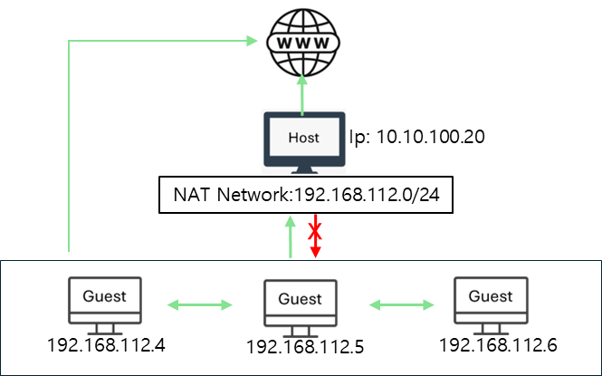 - 호스트와 게스트 간 통신만 가능하며, 외부 인터넷에는 연결되지 않습니다.
