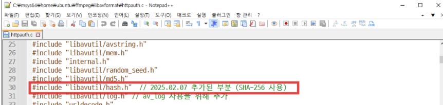 2. FFmpeg 소스 코드 수정: SHA-256 Digest 인증 알고리즘 수동 구현