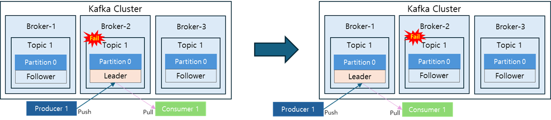 이 과정은 Kafka 클러스터가 복제본(Replica)을 잘 관리하고 있기 때문에 가능한 일입니다.