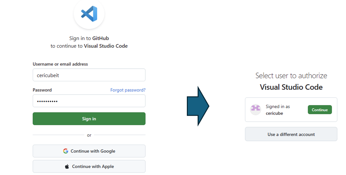 📌 VS Code 내부에서는 GitHub OAuth 로그인(가장 편함)