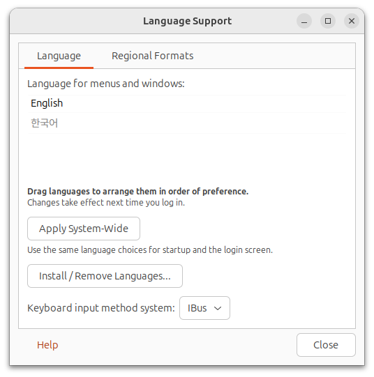 Ubuntu 24.04에서는 시스템 언어, 사용자 포맷, 입력기 설정이 분리되어 있습니다.