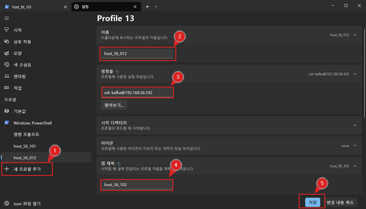 Windows Terminal은 자주 사용하는 연결을 프로필로 저장하여 관리할 수 있습니다.