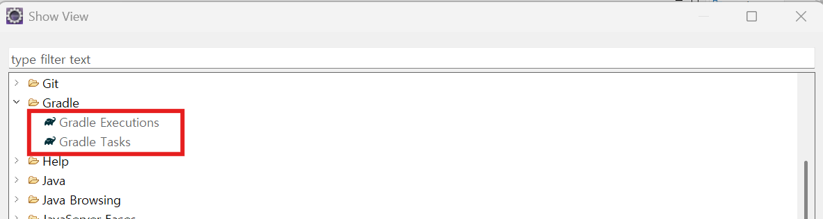 - Gradle, Spring, Boot Dashboard 등 필요한 View를 선택합니다.