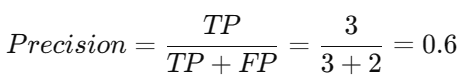 - Precision = 7 / 10 = 0.7 (70%)