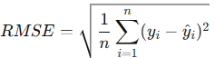 3. RMSE(Root Mean Squared Error): 평균 제곱근 오차