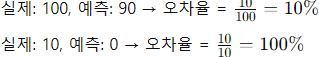 - 그래서 절댓값을 써서 오차의 크기만 반영합니다.