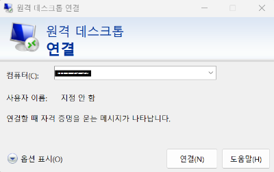 1. Windows 키 → 원격 데스크톱 연결 실행