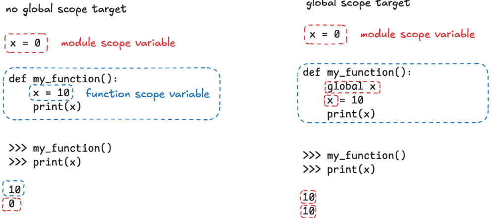- 다른 함수나 블록에서도 읽기(read)**는 자유롭게 가능하지만, 수정(write)하려면 global 키워드가 필요합니다.